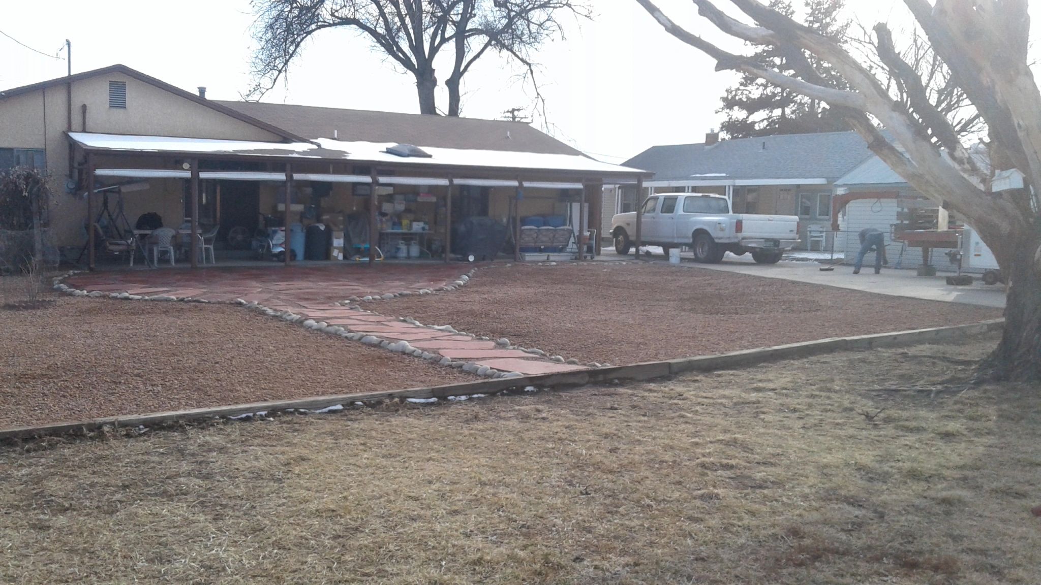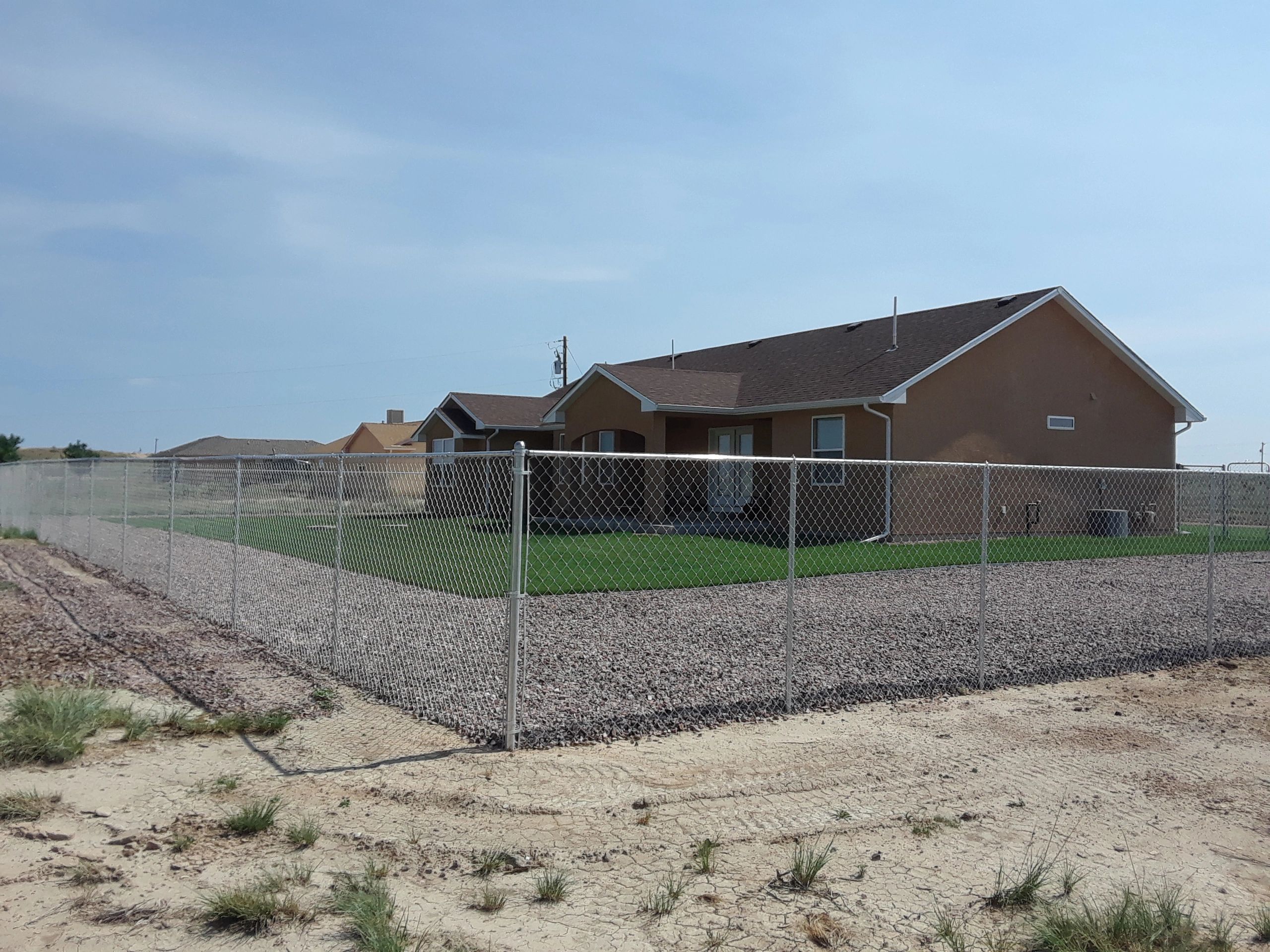 Decorative rock, SOD, sprinkler system and chain link fence - Front Yard